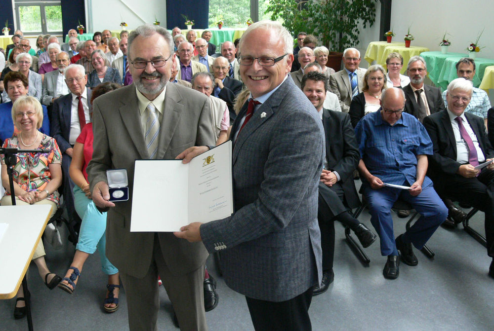 Auf die wichtigsten Stationen in Gerhards Tätigkeit ging Landrat Röckinger ein und zeigte die Bedeutung der Staufermedaille - baden-württembergs höchste Auszeichnung - auf.